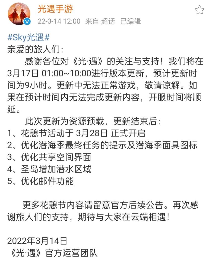 光遇停服多久?