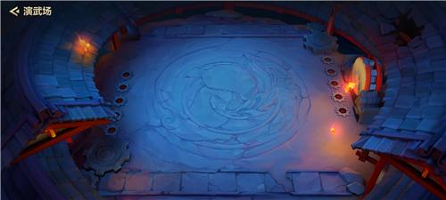 由齿轮机关抬升的演武场平台,看上去也是非常COOL,巧夺天工的古代机关,加上中间的圆盘图案,给人一种庄严的美感。精灵头上燃起的星星之火,没准会为你的对局激发几分灵感。