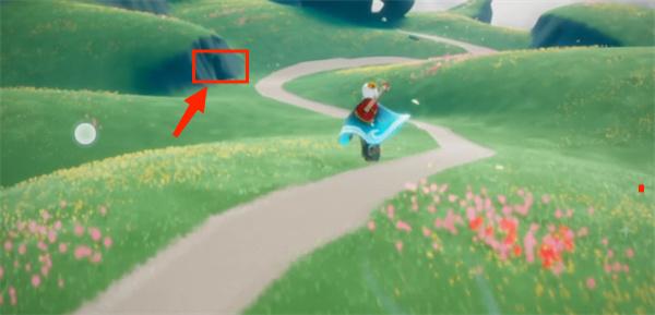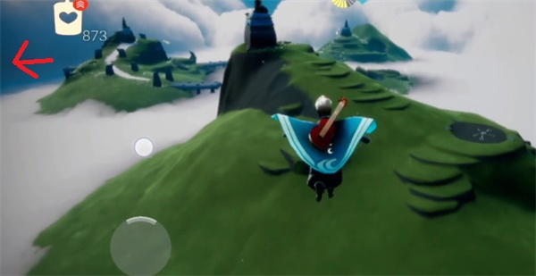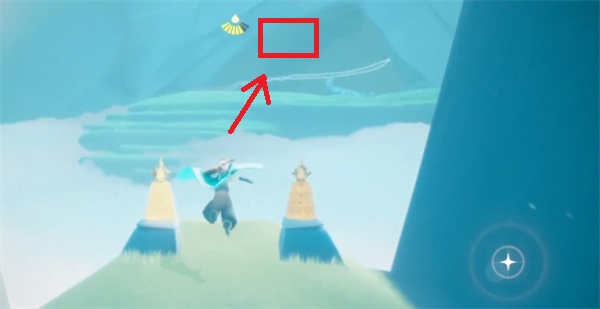 二、找到第一个后往左边飞,第二个在左边小圆山上面,如下图所示;