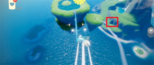 十八、往左边飞到出口看到海以后继续往左边飞找到第十九个,如下图所示;