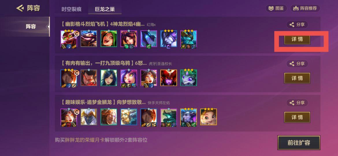 随便选择一个官方推荐的阵容,点击详情