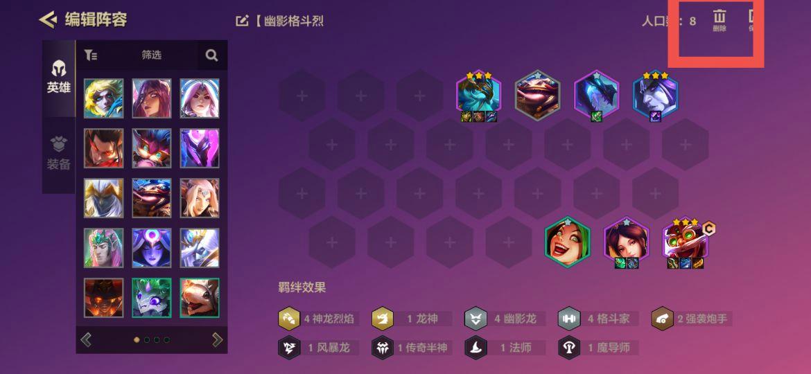 点击左上角的删除,清除当前阵容