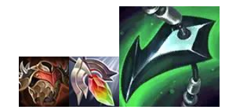 1.蚂蚱:巨人杀手(暴风大剑+反曲之弓)、珠光护手(无用大棒 拳套)、蓝霸符(女神之泪 眼泪)
