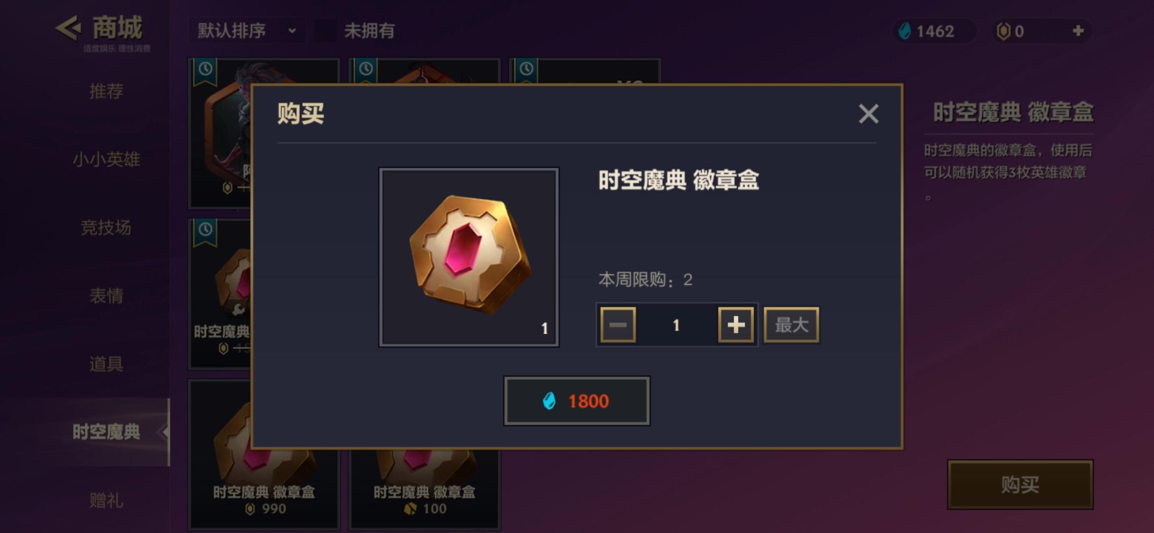 就金铲铲之战目前商城的物品情况,蓝色宝石购买时空魔典徽章盒是最为合适的,售价1800蓝色宝石。因为当你集齐所有奕子徽章并为其升星后,可以获得双城传说蔚小小英雄和双城传说爆爆小小英雄。