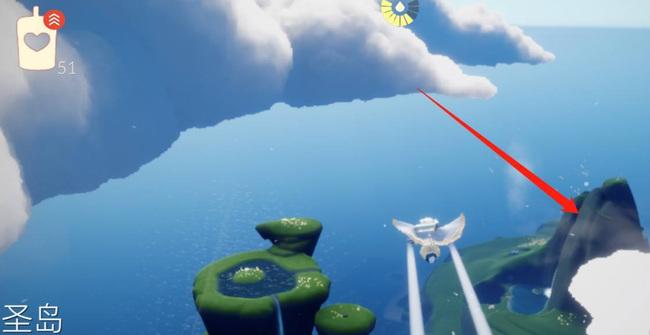 4.穿过云洞后就可以到达圣岛了,可以前往中间的岛上收集光翼与大蜡烛。
