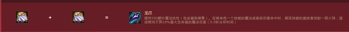 2、龙牙,提升魔抗,对抗法术输出,造成被动伤害。