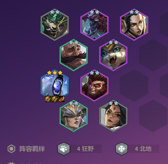 一、阵容搭配:狂野拉面熊、南天怒,西风之飒,霜卫首领,北地之盾,雷霆之主(三星),虚空恐惧,冰川骑士,齐天大圣,狻猊之心