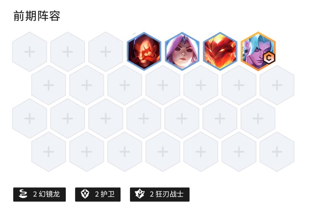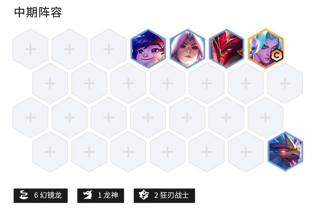7.前期过渡:前期过渡一定要胡,永恩最好来的多一点,保持连胜或精致连败,抢装备。用2幻镜龙 2护卫 2狂刃战士过渡。
