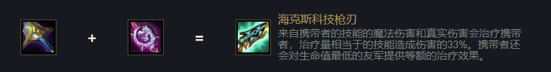 来自携带者的技能的魔法伤害和真实伤害会治疗携带者,治疗量相当于的技能造成伤害的33%。携带者还会对生命值最低的友军提供等额的治疗效果。