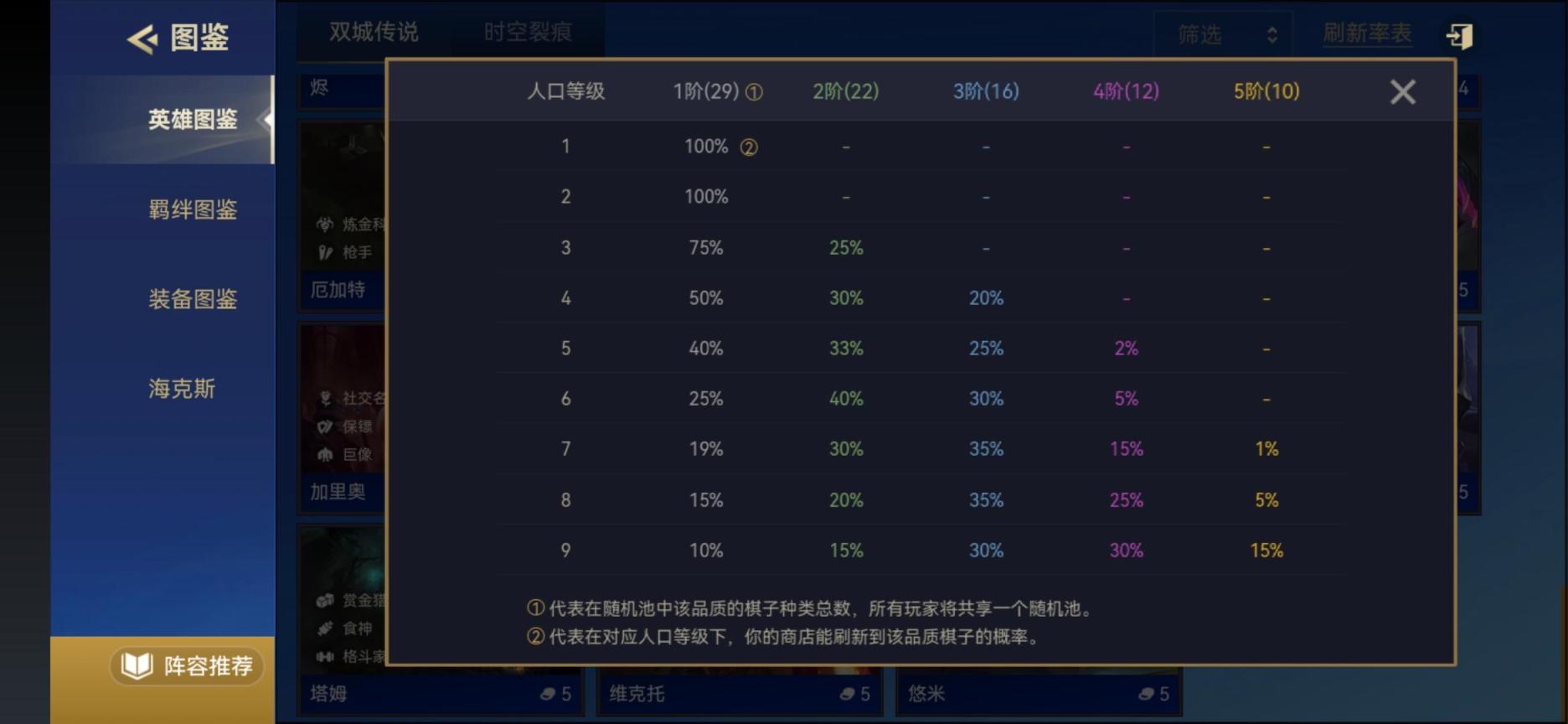金铲铲中每个五费奕子在卡池中一共有10张牌,7级是刷新概率为1%,8级上升到5%,9级上升到15%,具体奕子卡牌数量以及刷新概率可以在游戏英雄图鉴中查看。