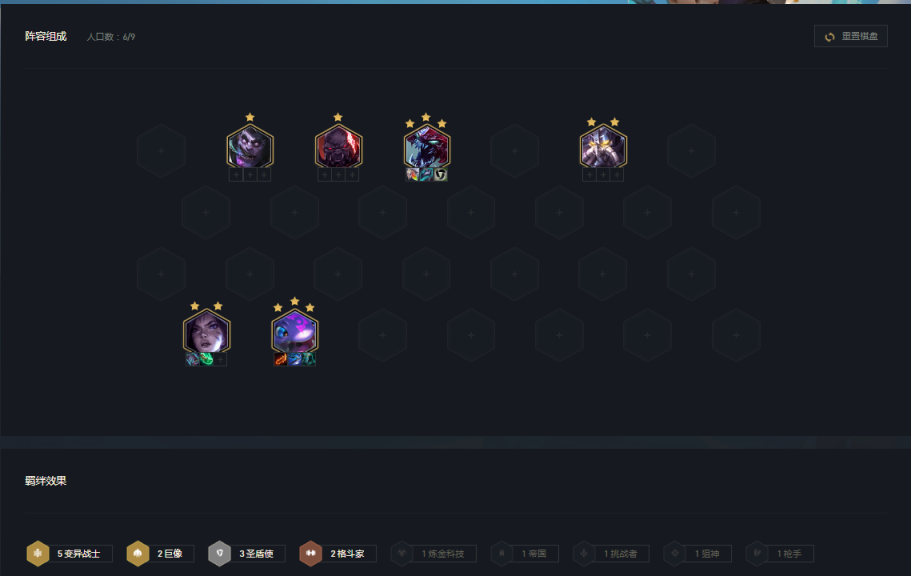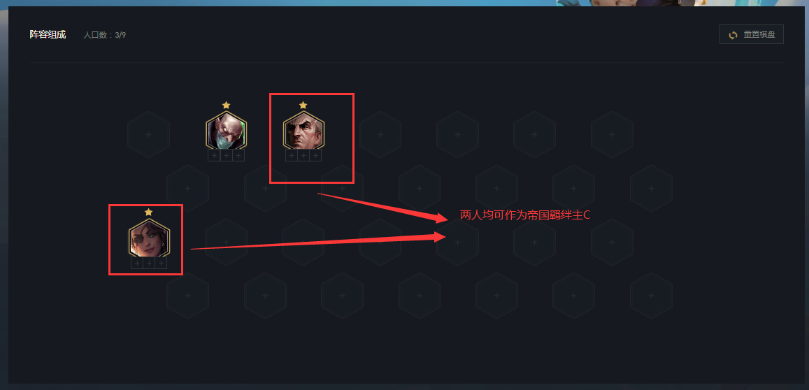 2、在1-4回合出现的第一个海克斯,除非特别想玩或者奕子特别胡,尽量不要选针对某一羁绊的海克斯。比如第一次的海克斯是双人统治、星界赐福和目标假人,在这种情况下,除非你已经有了帝国的主要卡牌,类似萨米拉或者乌鸦否则不建议选择双人统治,否则的话极其容易出现你选了海克斯却没有牌的情况。导致海克斯无法发挥作用。如下图奕子情况可以选择对应的海克斯。