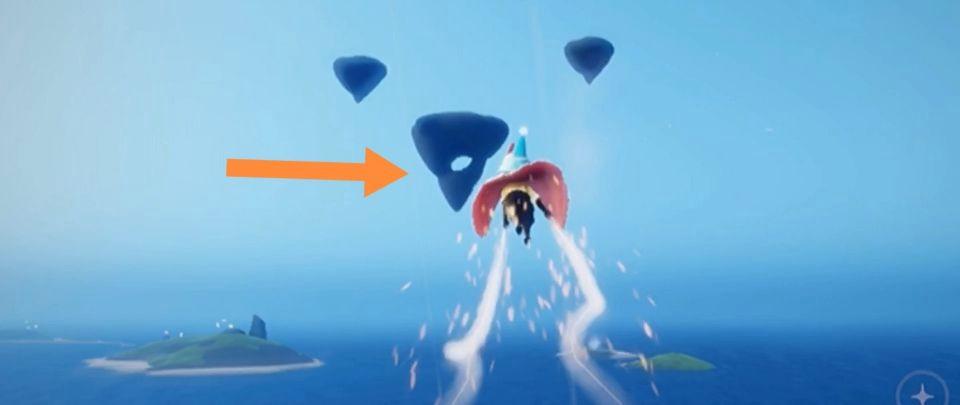 2、来到巨石这里点燃蜡烛,就可以看到编钟的线索是在空中浮岛群的中间这个浮岛上