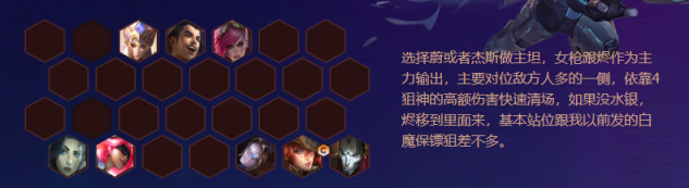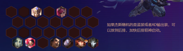 (2)如果杰斯随机的是蓝装或者AD输出装,可以放到后排,加快后排狙神启动。