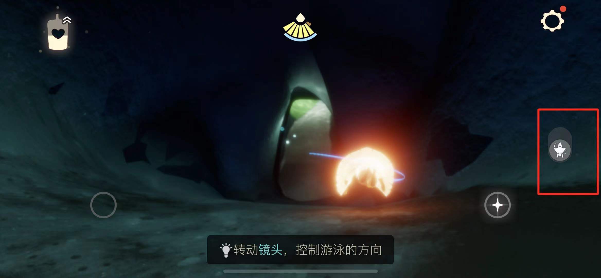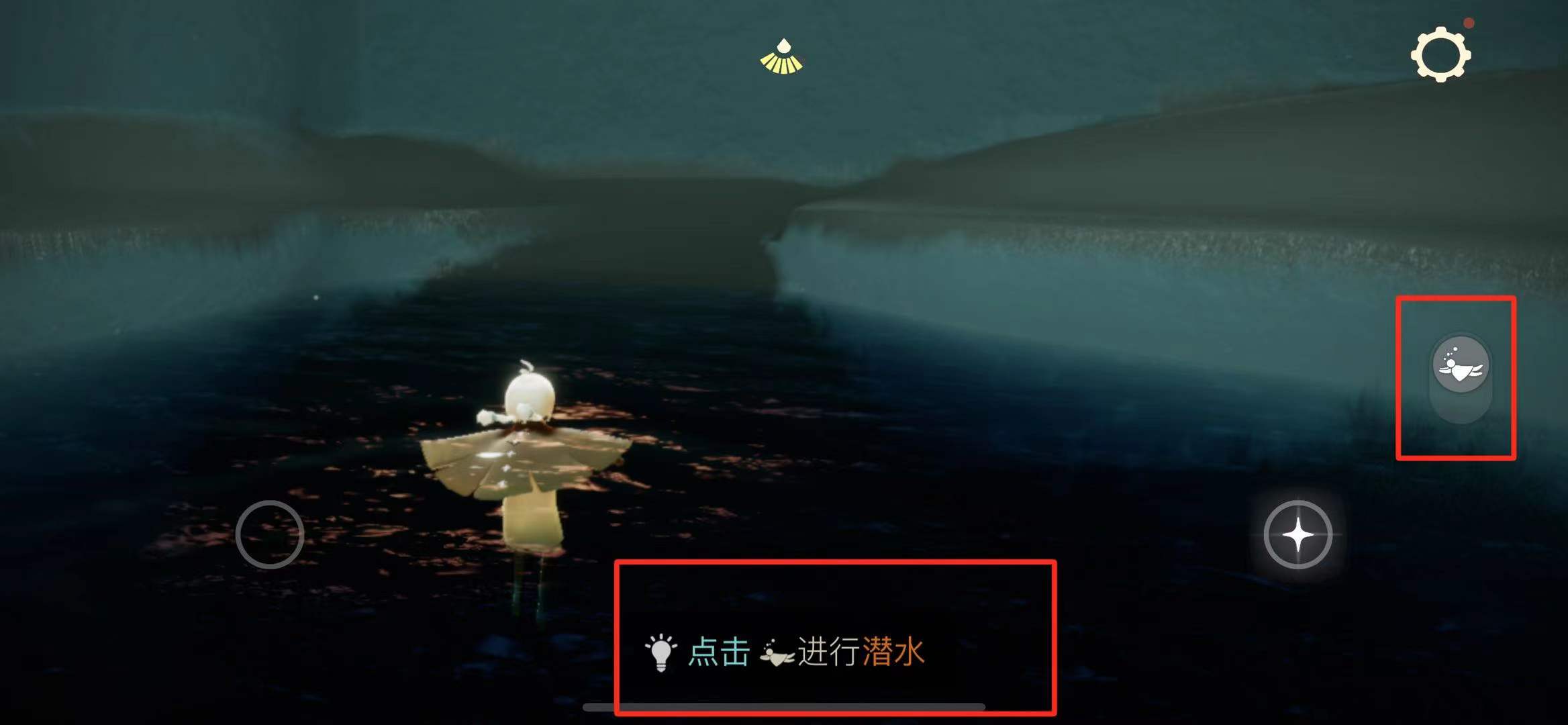 3.进入水中后,我们会收到屏幕下方的提示,跟着提示点击右侧按钮