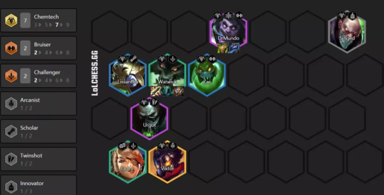 1.阵容组成:吉格斯、崔斯特、斯维因、薇古丝、马尔扎哈、维克托、迦娜
