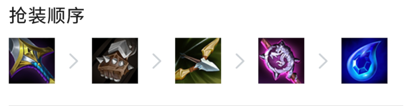 1、抢装顺序:暴风大剑>拳套>反曲弓>无用大棒>女神泪。