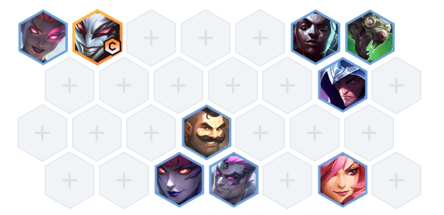 1、阵容组成:阿卡丽、萨科、艾克、婕拉、布隆、诺手、泰隆、卡特琳娜、图奇。
