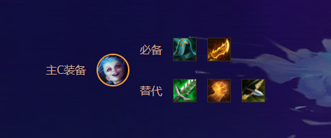 因为复活甲的移除,所以在当前版本中金克斯的神装是水银-确保不被控制并且提供一定的攻速,羊刀-持续性提升攻速,饮血剑或者正义之拳-吸血增加持续输出能力。