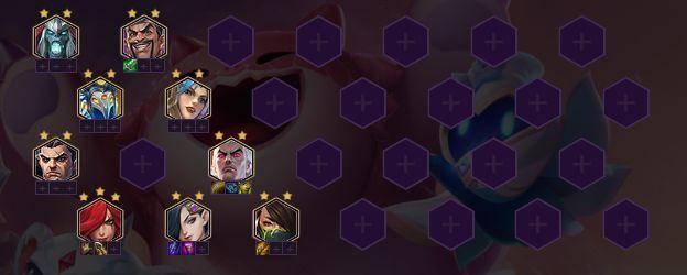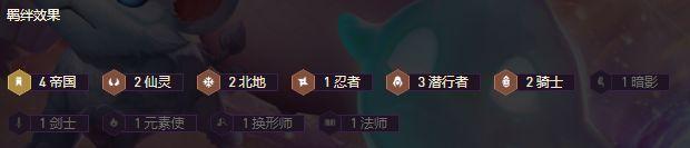 (1)核心打法:这套阵容的核心是不祥之刃,前期我们可以选择空城开局,然后在打完第一波野怪之后开始上棋子,前期搜到3星不祥之刃即可锁血,通过不断地调换站位来使我们的不祥之刃尽量往人多的地方跳,之后慢慢拉人口来找到帝国中的五费卡凤黯来凑齐4帝国,凤黯本身就是一张非常强力的单卡,再加上4帝国的伤害加成,可以说是非常强劲。此时依靠着前期的空城和中期的连胜来上到9级上5费强力卡。
