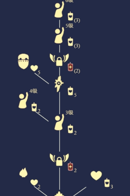 3、然后我们就可以用蜡烛跟先祖兑换,需要一级一级兑换,兑换双手再见动作需要12根白蜡烛。