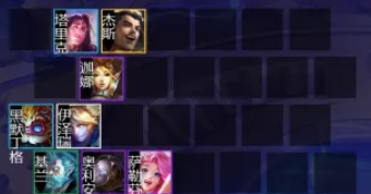 ①杰斯、迦娜、奥利安娜、萨勒芬妮、黑默丁格、塔里克、基兰、伊泽瑞尔