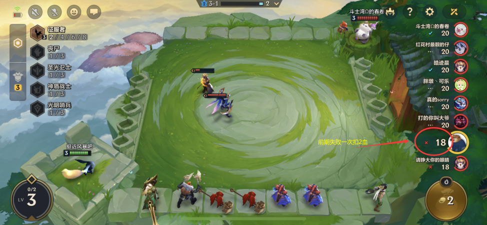 1.开局所有玩家初始20滴血,失败时扣固定血量,1~4阶段扣2,5~7阶段扣4,8阶段及后续阶段扣6。