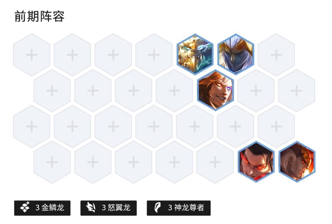 6.前期过渡:如果第一个金鳞龙装备是德莱文之斧,那就配合羊刀,阵容用3神龙尊者 3怒翼龙过渡,这样经济直接起飞,其他装备有限考虑肉装,越能抗,经济就越高。