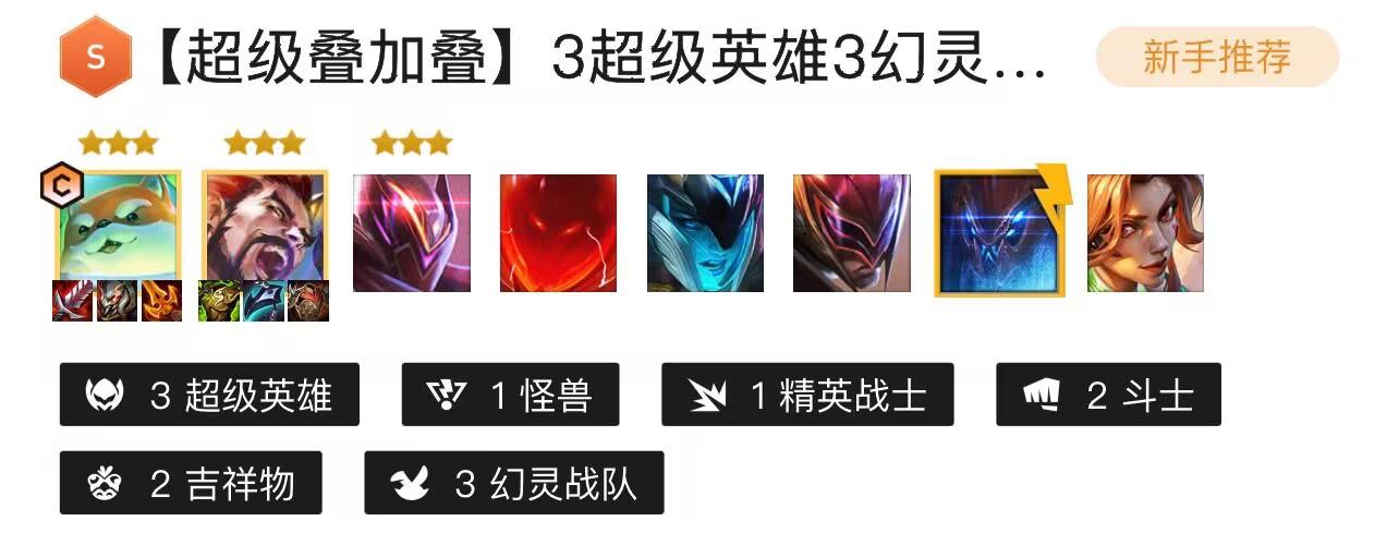幻灵战队的另外一种玩法阵容是由狗头、塞拉斯、普朗克、墨菲特、瑟庄妮、李青、厄加特、女枪组成,羁绊是由3超级英雄、1怪兽、1精英战士、2斗士、2吉祥物、3幻灵战士组成。