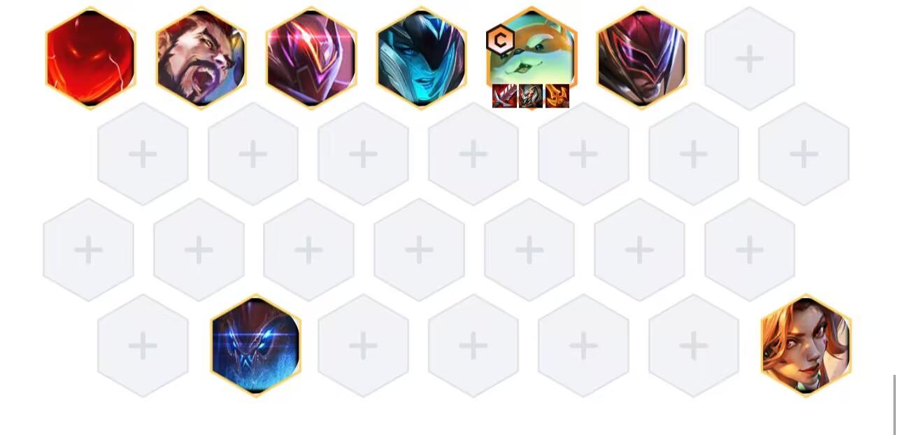 后期阵容:墨菲特、塞拉斯、普朗克、瑟庄妮、狗头、李青在第一排抗伤,厄加特、厄运小姐在最后一排输出。
