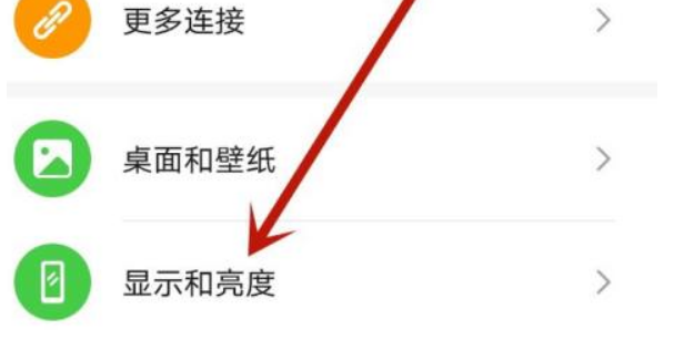 1、首先打开手机里的设置,再点击【显示和亮度】。