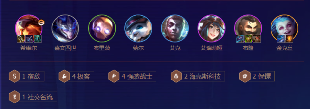 8、了解了以上信息后就可以参与战斗了。在这里我以4极客4强袭2海克斯阵容为例,来说明运营过程。