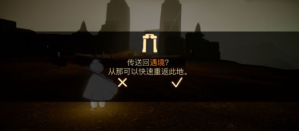 方法二:在即将被撞击时如上图开启传送回遇境的选择页面,注意这里不用选择,等到冥龙过去了直接点叉切回来就可以。这种方法被冥龙撞到不会掉翅膀。