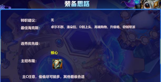 装备最重要的只有前排布隆必须给个石像鬼,其他只要合适即可,适合谁C就给谁,海克斯就是最强的装备。海克斯通常只有开局金以上的海克斯才会直接玩,彩当然更完美,都可以帮你前期轻松连胜,银如果后面没有更高的卓尔不群可以完全当做一种无脑连胜海克斯使用最后转换阵容,也可以最后拿到彩色卓尔不群直接替换为84或者95阵容。