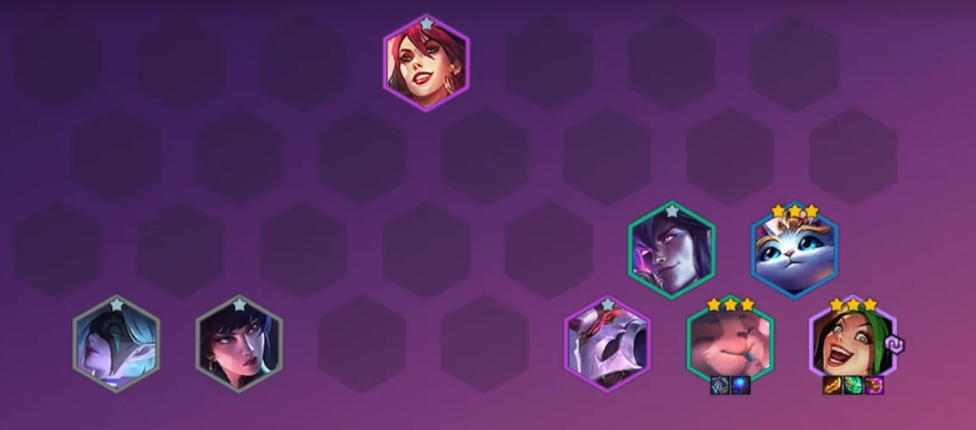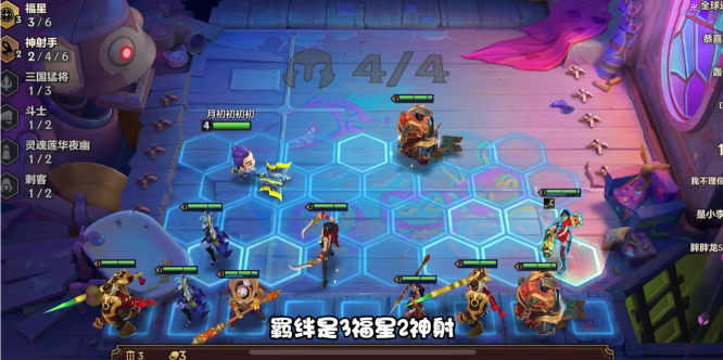 4、1-3打野怪爆出金克丝,然后爆出卡特,2-1时直接拉4人口,羁绊是2福星3神射。