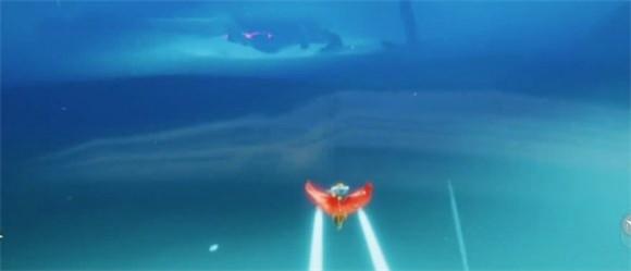 3、往前飞,玩家穿过前面的船,可以看见一个冒着红光的位置;
