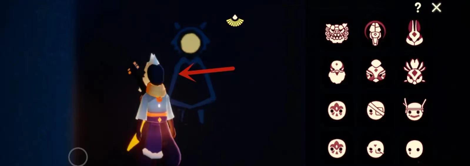 2、兑换黑脸面具。从先祖这里一路解锁上去,使用30个爱心兑换黑脸面具