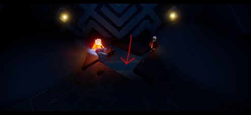 2.找到一处需要点火才能够开启的石门,石门需要2人合力点火才能够开启。