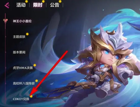 2、接着点击界面上方的限时,在界面点击cdkey兑换进入