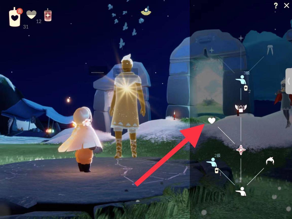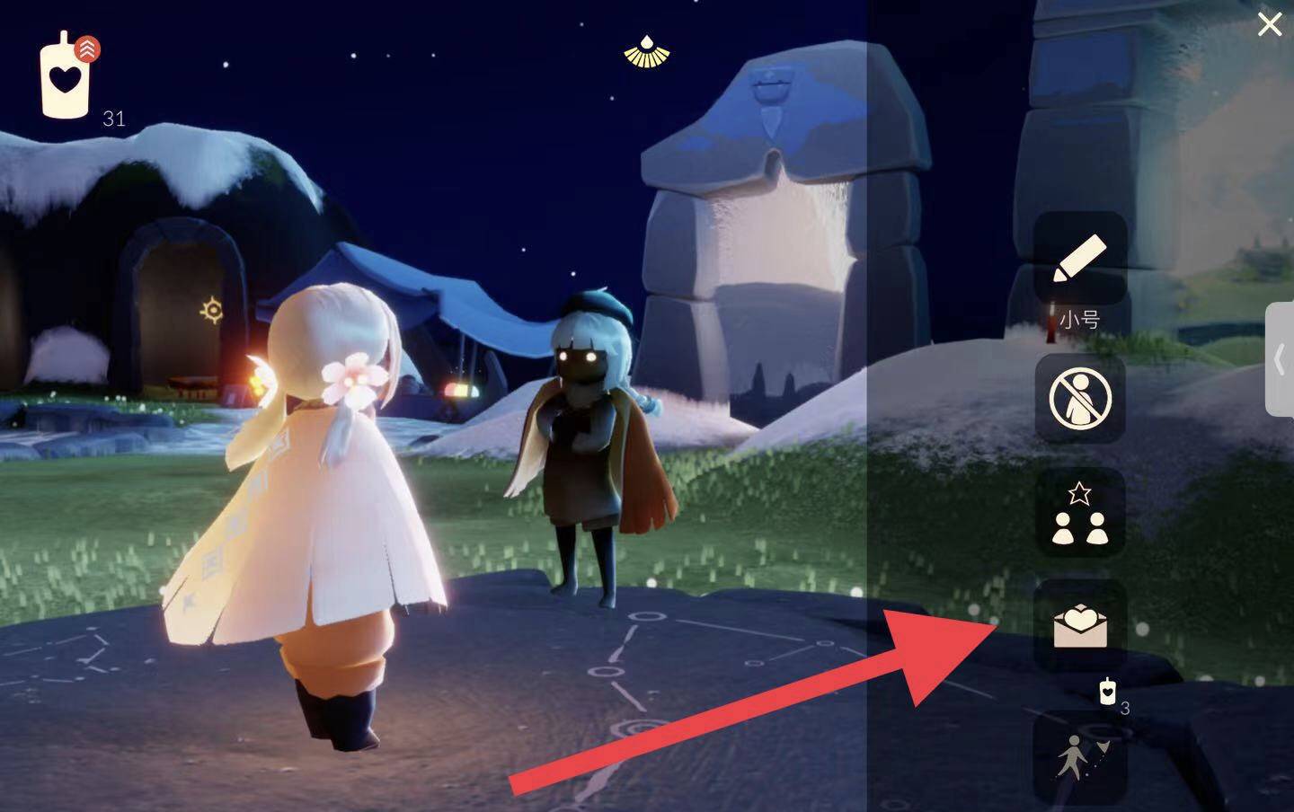 1、首先,光遇获取爱心的方式比较单一,要么跟先祖兑换(一个先祖只能兑换一颗爱心,并且需要三根蜡烛),要么好友赠送(好友花费三根蜡烛),要么在季节向导先祖完成任务获得免费爱心。
