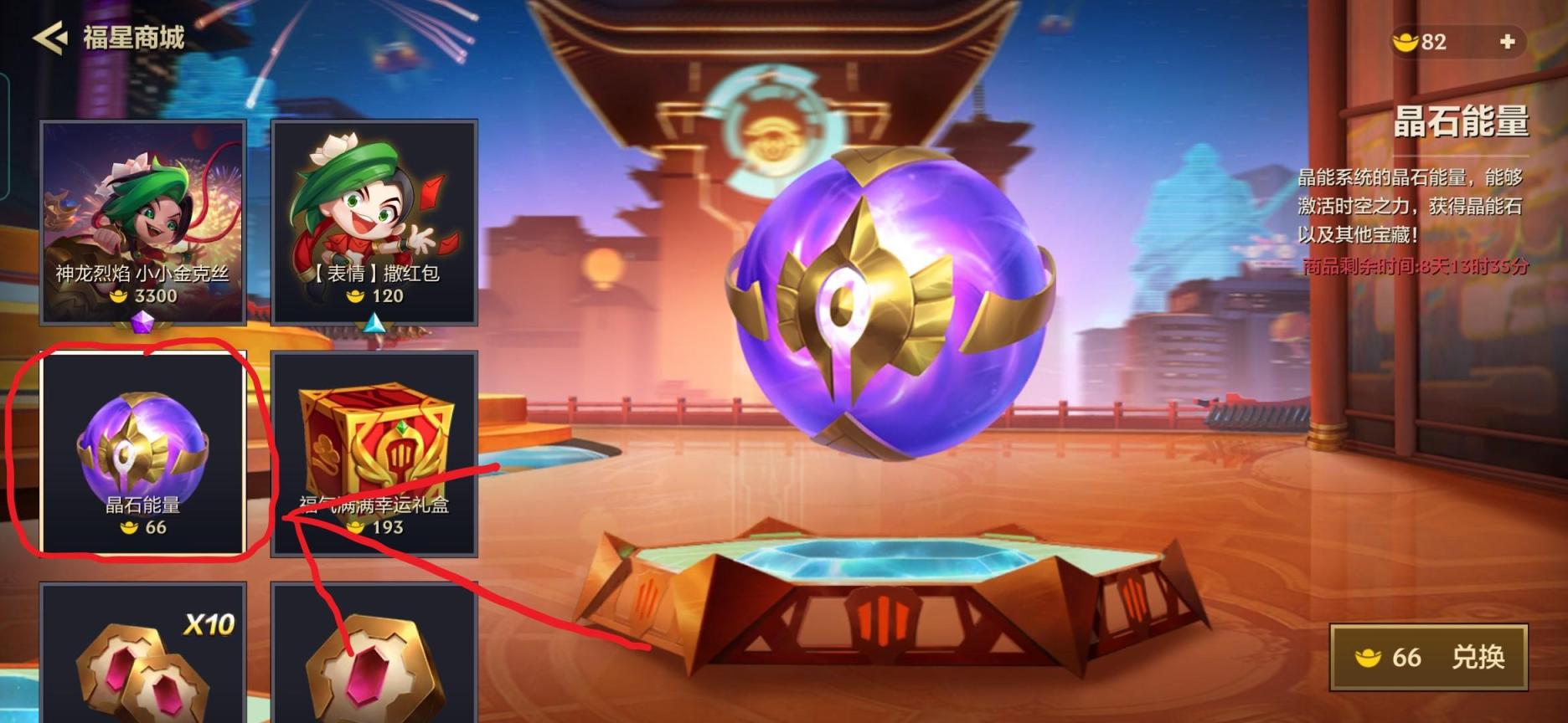 3.在福星商城里面兑换晶石能量。(晶石能量是需要66福星元宝的,而福星元宝通过每次进行集福模式就可以免费获取。)