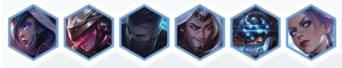 霞、菲奥娜、慎、易、锐雯、艾瑞莉娅、洛、艾克。