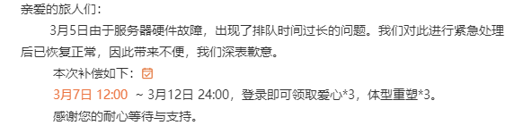 2、光遇正在维修服务器,这种情况大概率是服务器要更新或者出现问题,维修时间一般不长,维修后也会给玩家维修补偿