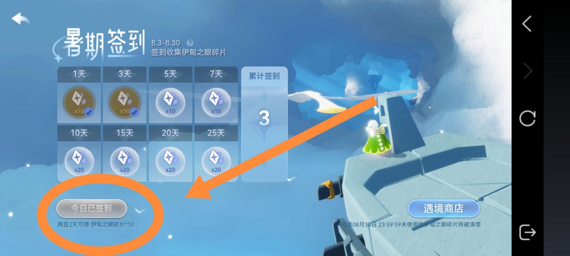 1、光遇中的伊甸之眼碎片是通过暑假签到活动获得的,玩家首先点击右上方的设置按钮