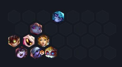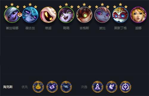 1、阵容组成如下、约德尔一旦成型有了维迦之后只需要维迦一个就可以清理战场,但是前期也需要一定过渡,而薇古丝在前排,小炮在后排可以很好卖血,不至于撑不到后期。
