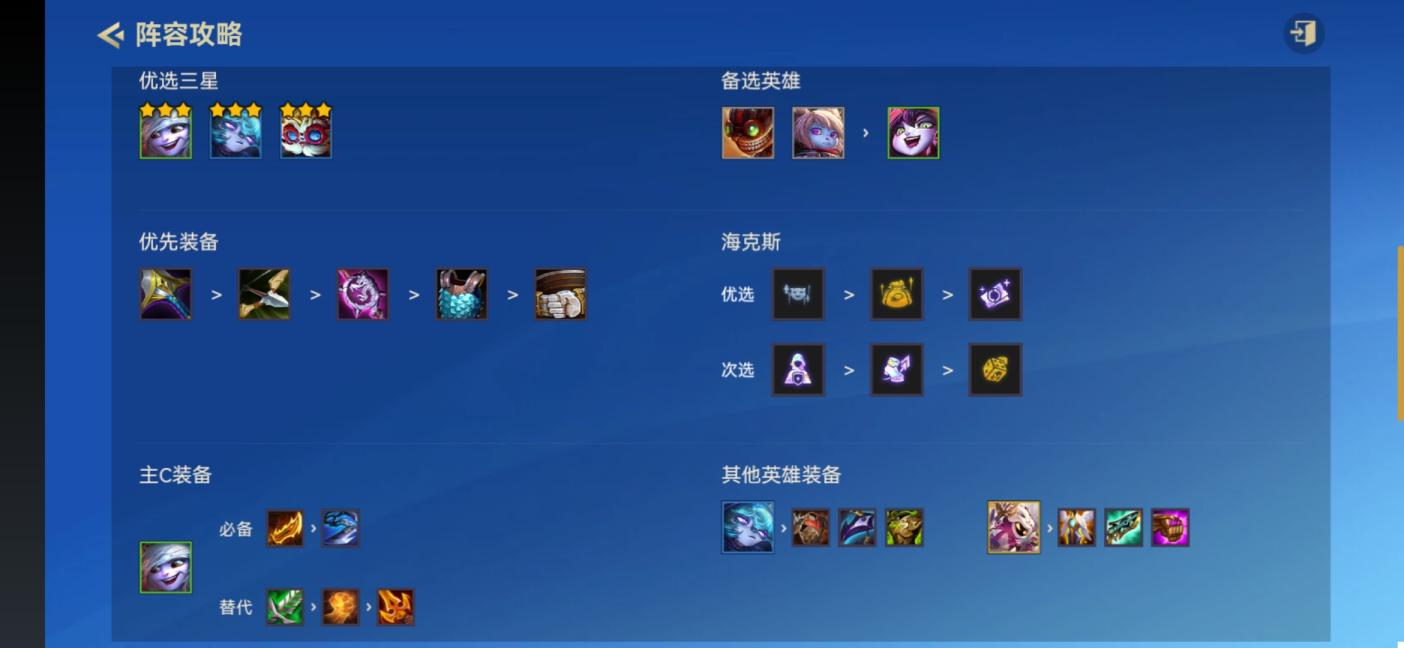 3、装备以及海克斯:约德尔全员三星,其他英雄可以不强追。