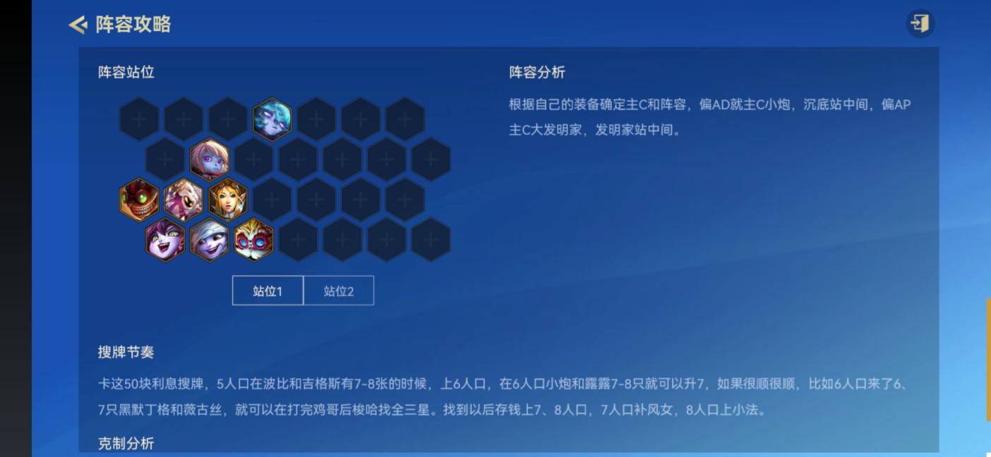 4、站位以及D牌节奏:卡这50块利息搜牌,5人口在波比和吉格斯有7-8张的时候,上6人口,在6人口小炮和露露7-8只就可以升7,如果很顺很顺,比如6人口来了6、7只黑默丁格和薇古丝,就可以在打完鸡哥后梭哈找全三星。找到以后存钱上7、8人口,7人口补风女,8人口上小法。