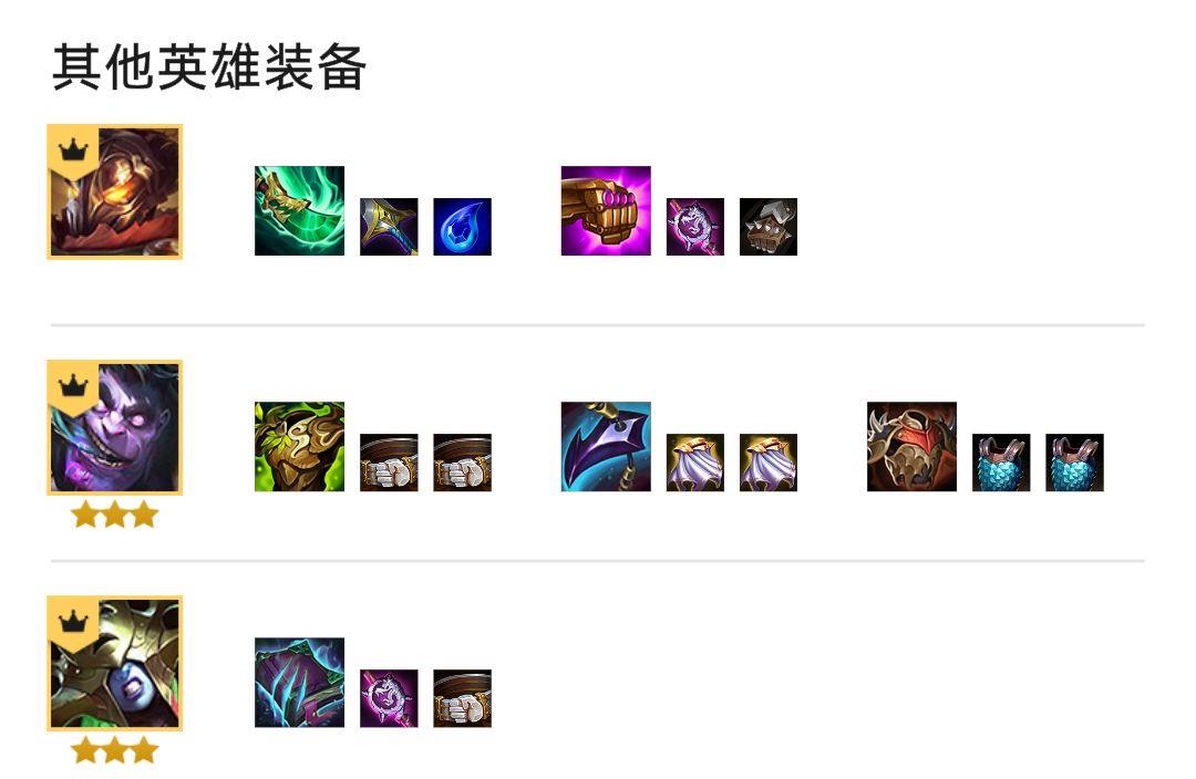 2.副C,维克托装备:朔极之矛,珠光护手。蒙多装备:狂徒铠甲,龙爪,棘刺背心。丽桑卓装备:莫雷洛秘典。