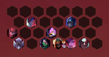 4、阵容站位:整体站后两排沉底拉怪,慎和永恩顶在前面抗伤害;派克站角落,大招容易命中更多的单位;凯隐单切一边;劫一般情况下跳中间,放寡妇旁边吃旗子。