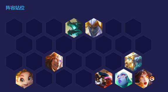 6、对局阵容阵型站位 艾达丝纯肉装抗伤害,有坚定投资器一般给剑魔上去送,有伏击之抓霞就站在角落,没有伏击看情况有锤石站在第二个,没有锤石还是站在角落里,其它棋子主要以保护霞打钱为主
