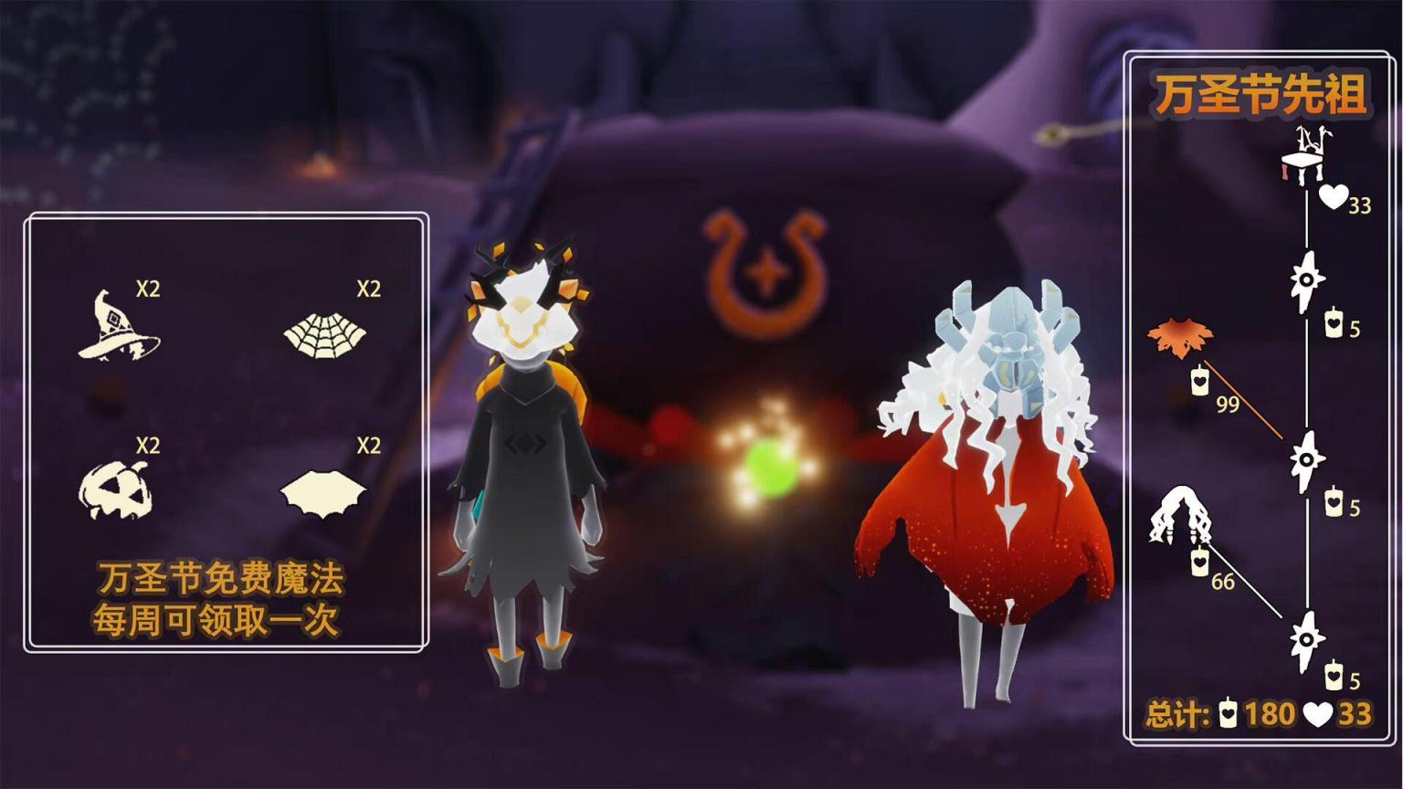 万圣节斗篷所需蜡烛为99根白蜡烛。兑换万圣节斗篷需解锁前两个结点,需要10根白蜡烛,并可得到随机魔法。万圣节入口在办公室厕所右边屋子里,点牵手可以进入,进入后可以和先祖兑换斗篷,同时,每周都可以兑换一次免费魔法。此外,万圣节其它斗篷还有巫师都需要软妹币啊。